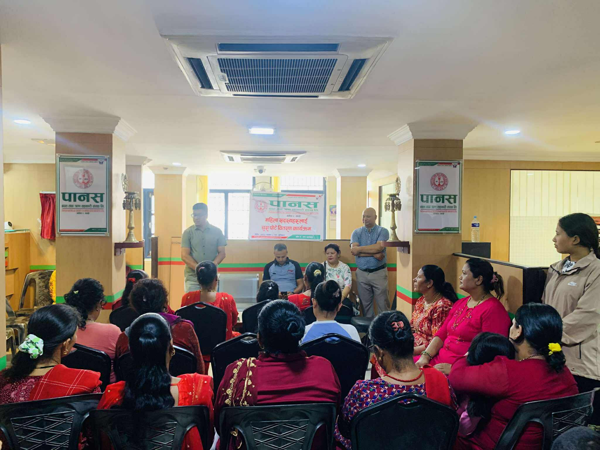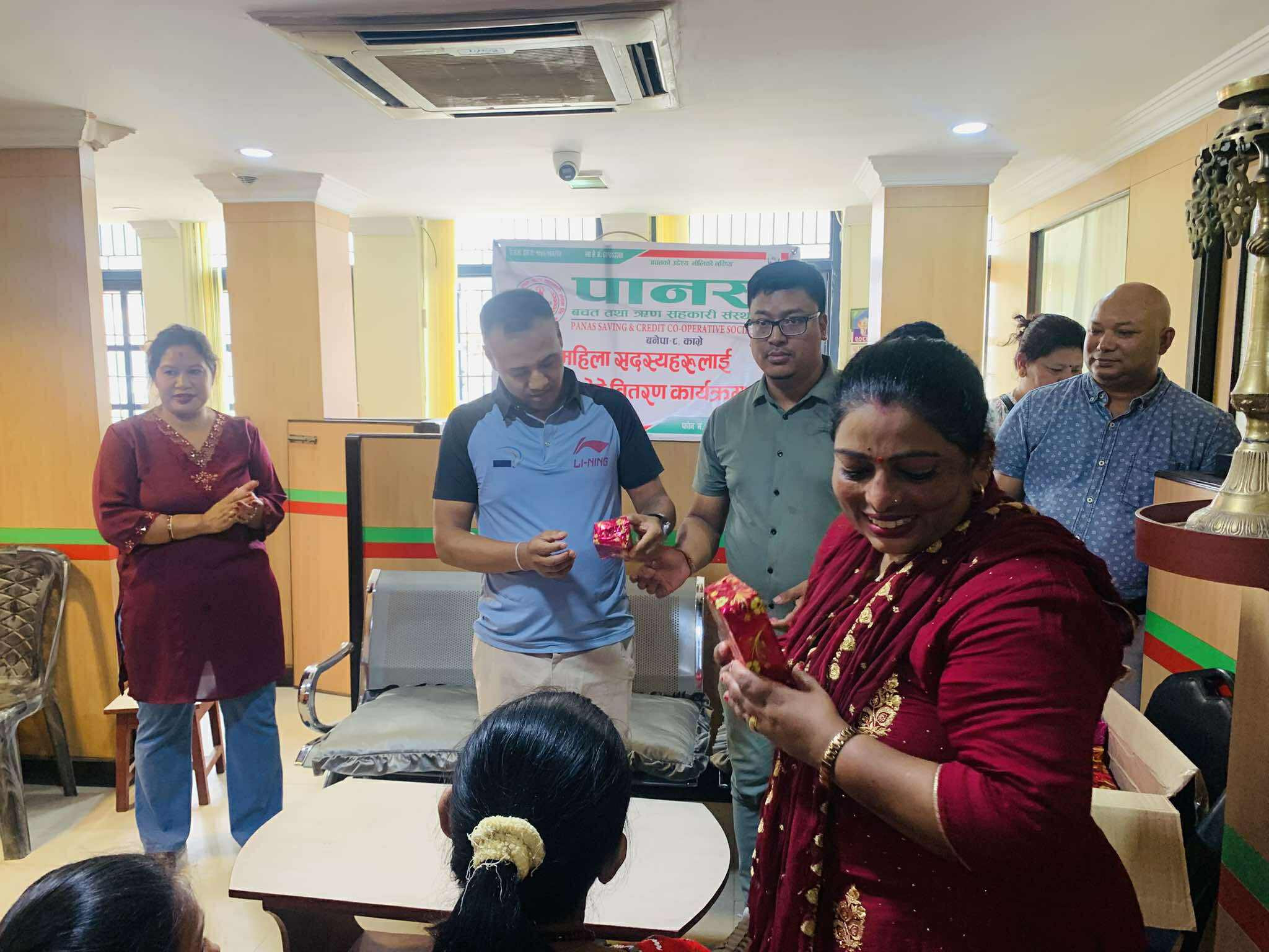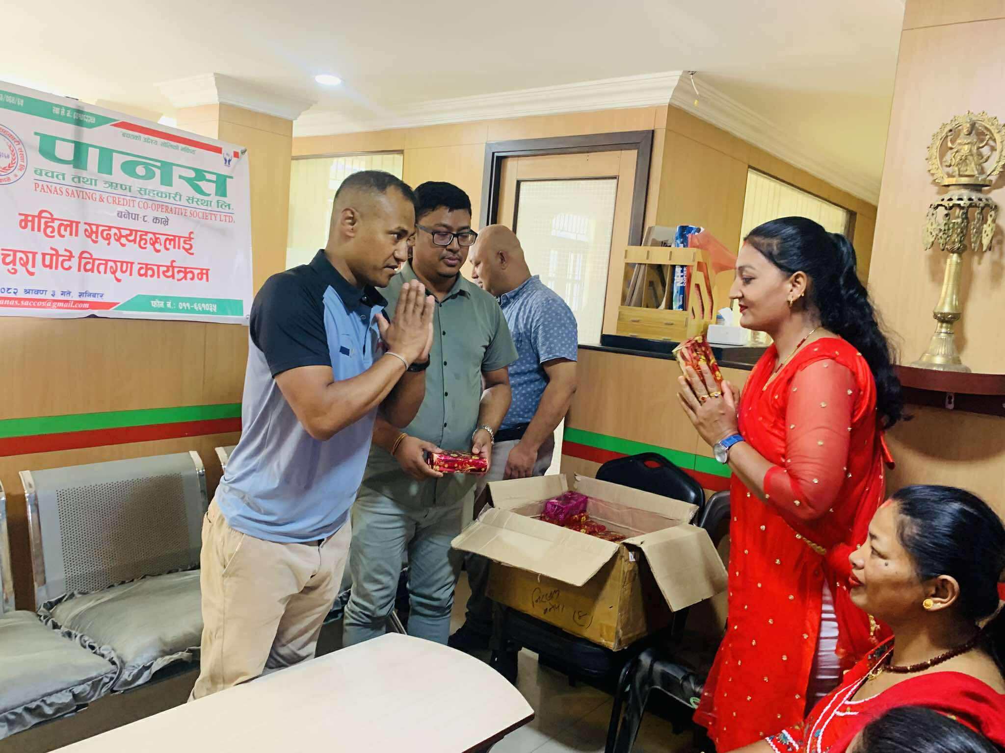 Glimpses of the program in which green bangles, potes and mehendi were distributed to women members under Nari bachat for the month of Shravan 2082.