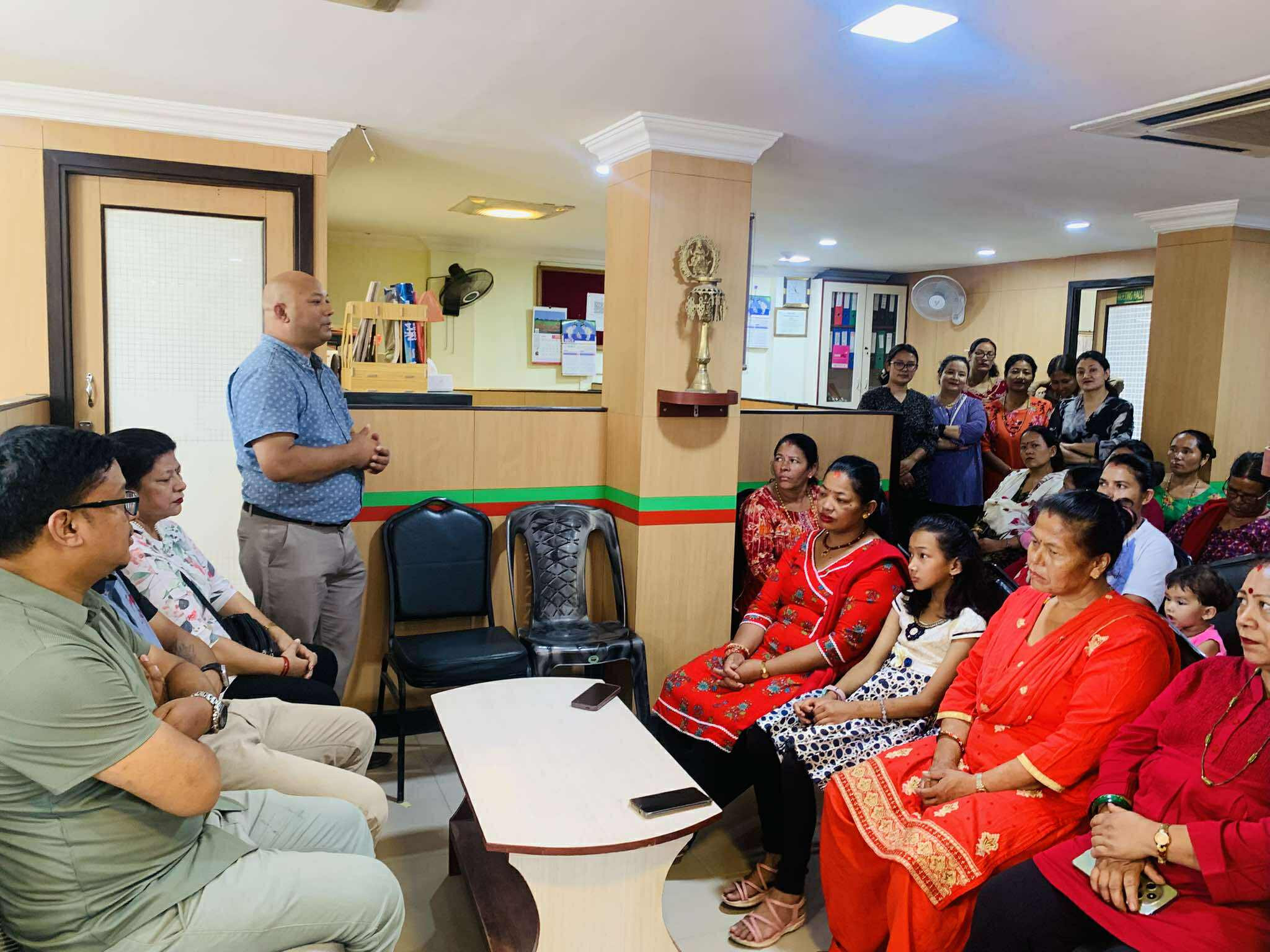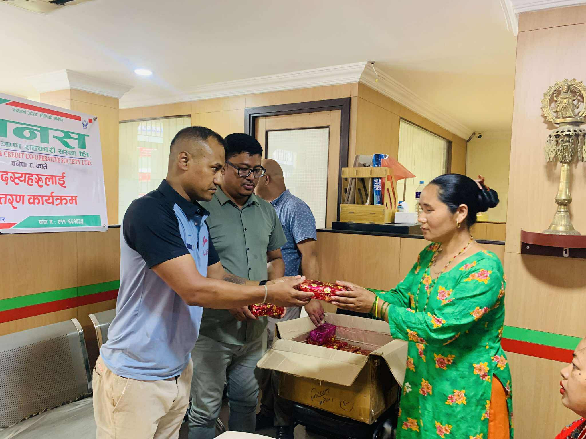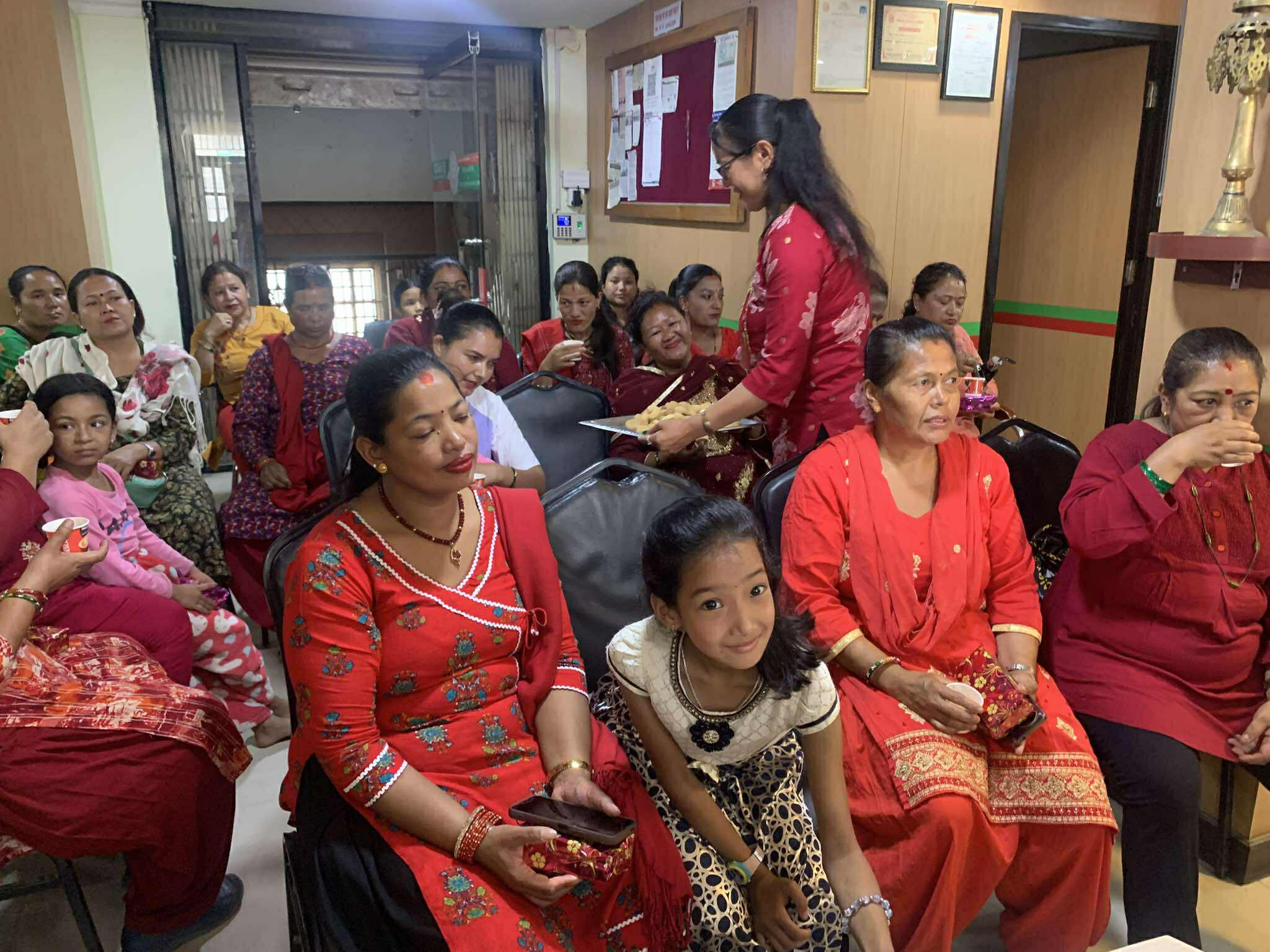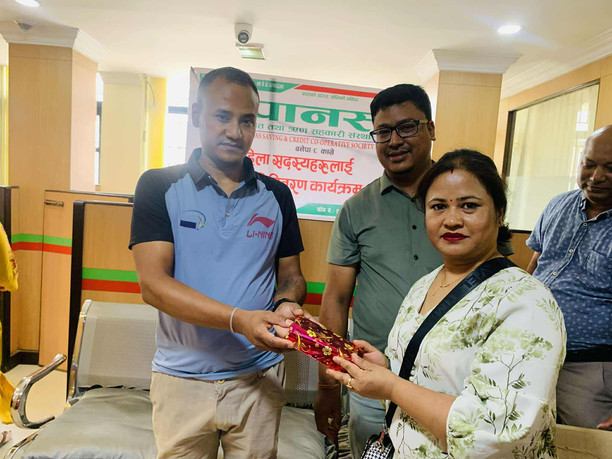 Glimpses of the program in which green bangles, potes and mehendi were distributed to women members under Nari bachat for the month of Shravan 2082.